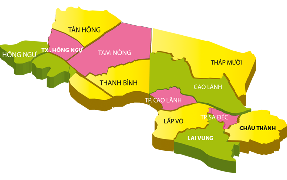 Đồng Tháp thuộc khu vực Đồng bằng sông Cửu Long (13 tỉnh, thành phố), gồm 02 phần nằm ở 02 bên bờ Bắc và Nam sông Tiền, phía Bắc giáp tỉnh Pray-veng (Campuchia), phía Nam giáp tỉnh Vĩnh Long và thành phố Cần Thơ, phía Tây giáp tỉnh An Giang, phía Đông giáp tỉnh Long An và tỉnh Tiền Giang.